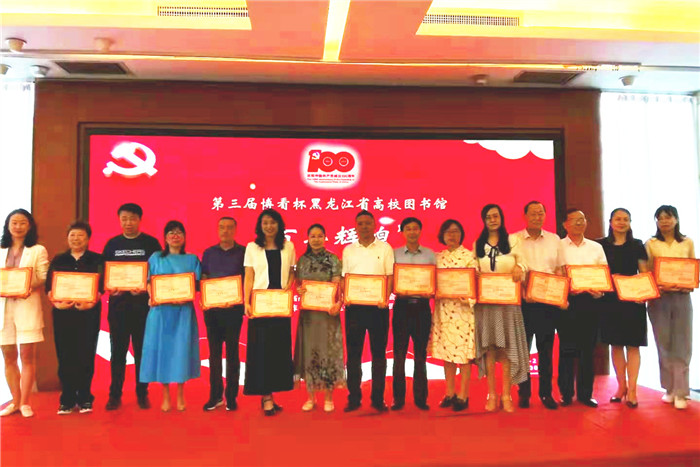 7月5日,黑龙江省高校图书馆“百年辉煌”庆祝中国共产党成立100周年朗读大赛颁奖活动在哈尔滨举行。我校图书馆获得最佳组织奖,王立斌的朗读作品《大写的中国》、王丽娜的朗读作品《没有共产党就没有新中国》获得馆长组二等奖,邓万友的朗读作品《读中国》获得馆长组优秀奖;司丽华的朗读作品《英雄》获得馆员组优秀奖。