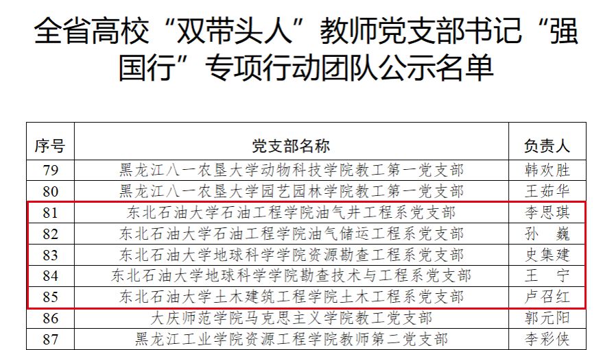 完善三全育人格局。紧扣立德树人根本任务,强化社会主义核心价值观引领,突显大庆精神育人特色,持续推进《习近平新时代中国特色社会主义思想概论》进教材进课堂进头脑,出台《东北石油大学“三全育人”行动方案》《新时代大庆精神育人行动方案》,形成“六位一体”大庆精神育人模式。获批全国民族团结进步示范学校、教育部思政精品项目2项、省级重点马克思主义学院、黑龙江省铸牢中华民族共同体意识研究基地、黑龙江省基层思想政治工作示范点、黑龙江省五四红旗团委,为建设国内著名国际知名一流能源大学集聚智慧力量。